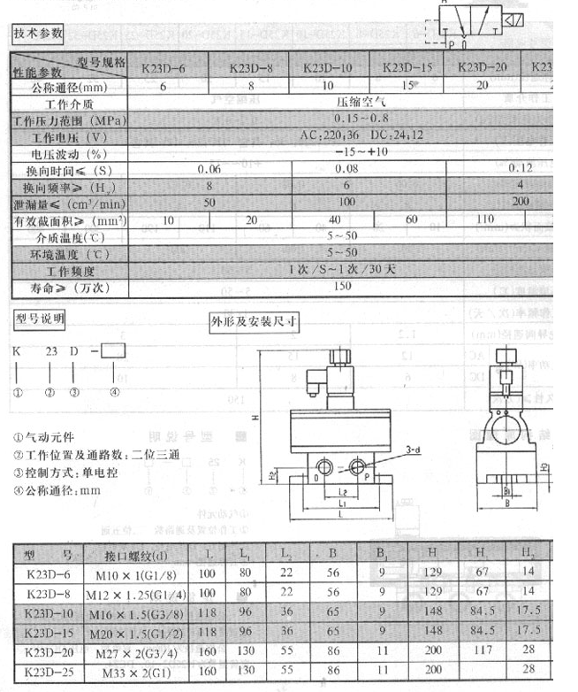 二位三通單電控滑閥K23D-6,K23D-8,K23D-10,K23D-15,K23D-20,K23D-25
