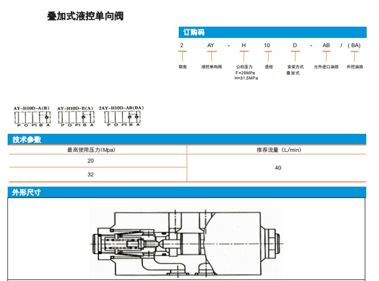 AY-H10D-A(B),AY-H10D-B(A),2AY-H10D-AB(BA),疊加式液控單向閥