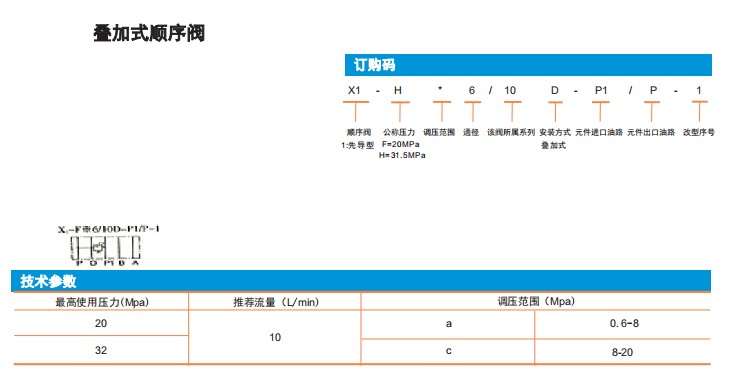 X1-Fa6/10D-P1/P-1,X1-Fc6/10D-P1/P-1,疊加式順序閥
