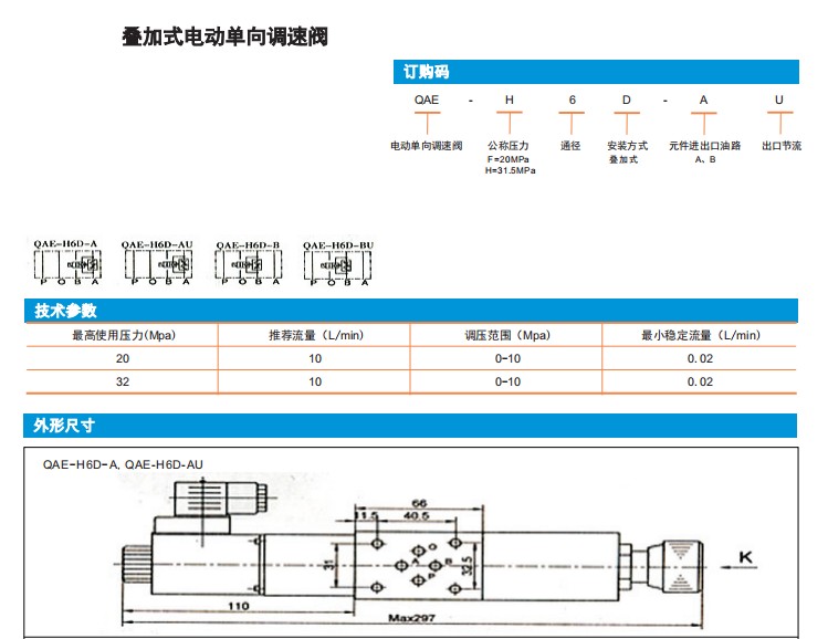QAE-H6D-A,QAE-H6D-AU,QAE-H6D-B,QAE-H6D-BU,疊加式電動(dòng)單向調(diào)速閥