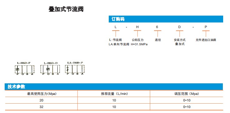 L-H6D-P,L-H6D-O,LA-H6D-P,疊加式節(jié)流閥