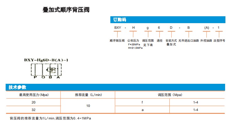 BXY-Ha6D-B(A)-1,BXY-Hg6D-B(A)-1,BXY-Fa6D-B(A)-1,BXY-Fg6D-B(A)-1,疊加式順序背壓閥