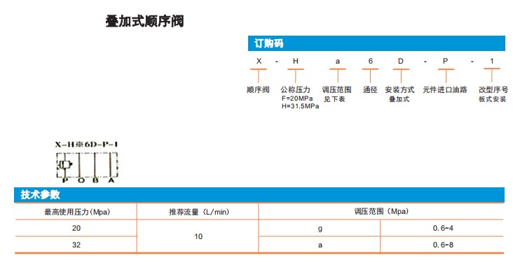 X-Ha6D-P-1,X-Hg6D-P-1,X-Fa6D-P-1,X-Fg6D-P-1,疊加式順序閥