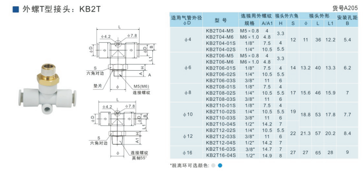 SMC型外螺T型接頭KB2T04-M5,KB2T04-M6,KB2T04-01S,KB2T04-02S,KB2T06-M5,KB2T06-M6,KB2T06-01S,KB2T06-02S,KB2T06-03S,KB2T08-01S,KB2T08-02S,KB2T08-03S,KB2T08-04S,KB2T10-01S,KB2T10-02S,KB2T10-03S,KB2T10-04S,KB2T12-02S,KB2T12-03S,KB2T12-04S,