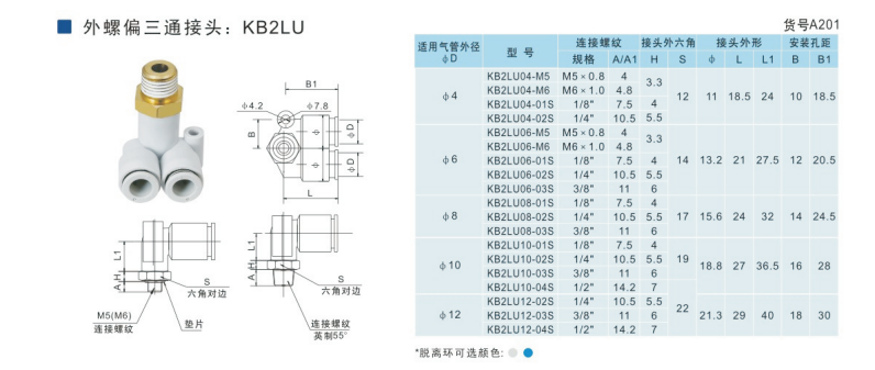 SMC型外螺偏三通接頭KB2LU04-M5,KB2LU04-01,KB2LU04-02,KB2LU06-M5,KB2LU06-01S,KB2LU06-02S,KB2LU06-03S,KB2LU08-01S,KB2LU08-02S,KB2LU08-03S,KB2LU10-01S,KB2LU10-02S,KB2LU10-03S,KB2LU10-04S,KB2LU12-02S,KB2LU12-04S,