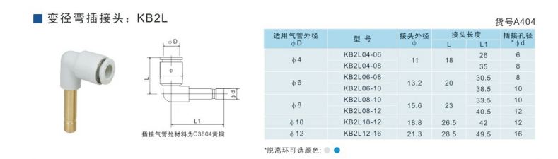 SMC型變徑彎插接頭KB2L04-06,KB2L06-08,KB2L06-10,KB2L08-10,KB2L08-12,KB2L10-12,KB2L12-16,