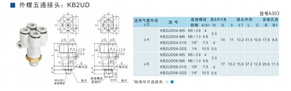SMC型外螺五通接頭KB2UD04-01S,KB2UD04-02S,KB2UD04-03S,KB2UD06-01S,KB2UD06-02S,KB2UD06-03S,