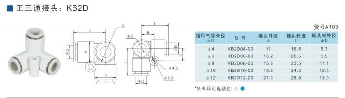 SMC型正三通接頭KB2D04-00,KB2D06-00,KB2D08-00,KB2D10-00,KB2D12-00,