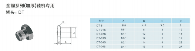 SMC型全銅系列(加厚)鞋機專用DT-M5,DT-1/8,DT-1/4,DT-3/8,DT-1/2,DT-3/4,DT-1寸,