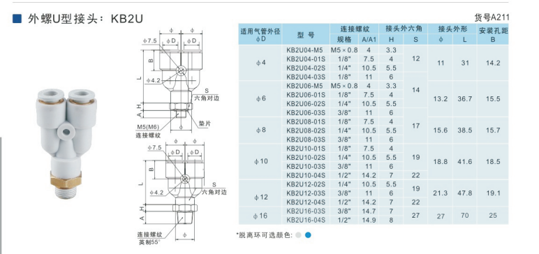 SMC型外螺U型接頭KB2U04-M5,KB2U04-M6,KB2U04-01S,KB2U04-02S,KB2U06-M5,KB2U06-M6,KB2U06-01S,KB2U06-02S,KB2U06-03S,KB2U08-01S,KB2U08-02S,KB2U08-03S,KB2U08-04S,KB2U10-01S,KB2U10-02S,KB2U10-03S,KB2U10-04S,KB2U12-02S,KB2U12-03S,KB2U12-04S,