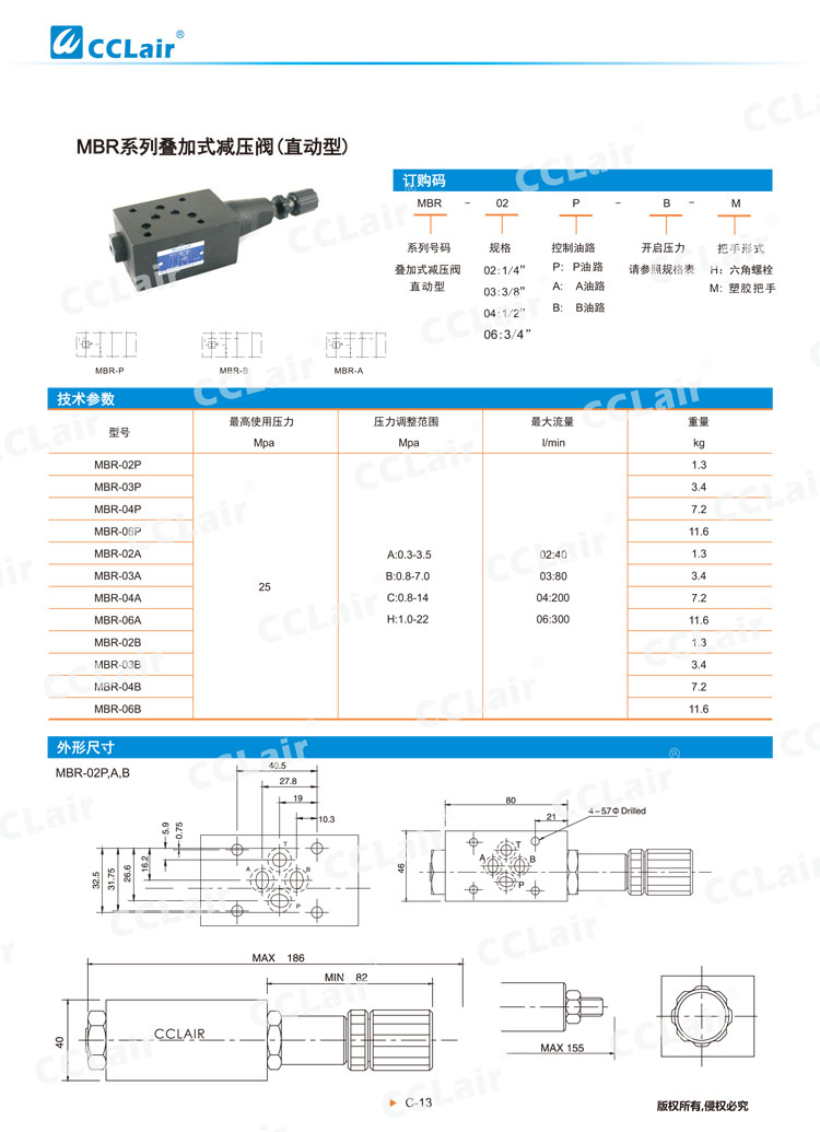 疊加型減壓閥BR-02A,BR-03A,BR-04A,BR-06A,BR-02P,BR-03P,BR-04P,BR-06P,BR-02B,BR-03B,BR-04B,BR-06B,