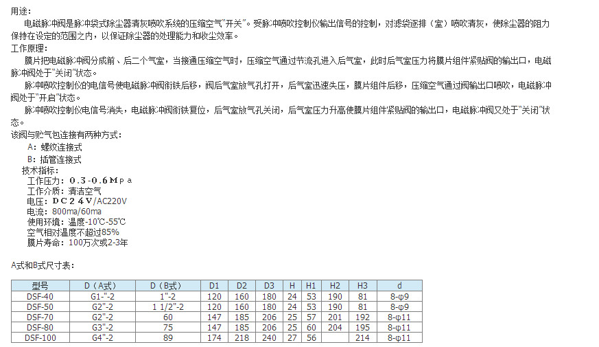 淹沒式脈沖閥TSF-50,TSF-70,TSF-80,TSF-100,
