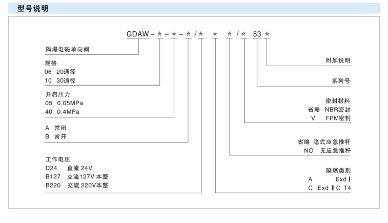 GDAW-10-05,GDAW-10-40,GDAW-10-05-A/D24A/53 隔爆電磁單向閥 GDAW-10-05-A/D24A/53,GDAW-10-40-A/D24A/53, GDAW-10-05-B/D24A/53,GDAW-10-40-B/D24A/53, GDAW-10-05-A/B127A/53,GDAW-10-40-A/B127A/53, GDAW-10-05-B/B127A/53,GDAW-10-40-B/B127A/53, GDAW-10-05-A/B220A/53,GDAW-10-40-A/B220A/53, GDAW-10-05-B/B220A/53,GDAW-10-40-B/B220A/53,