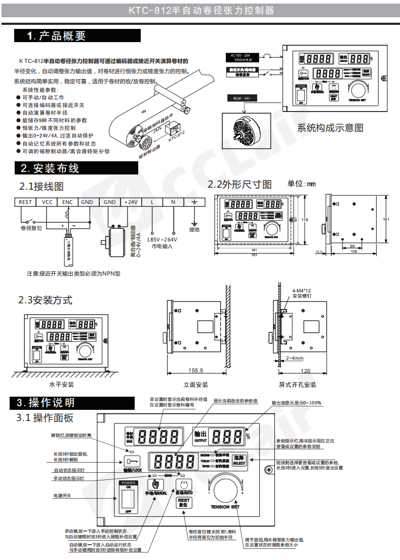 張力控制器KTC800A KTC800B KTC811 KTC812 KTC813 KTC818A KTC820B KTC828A KTC838A KE848 SJ-180A KDT-B-600