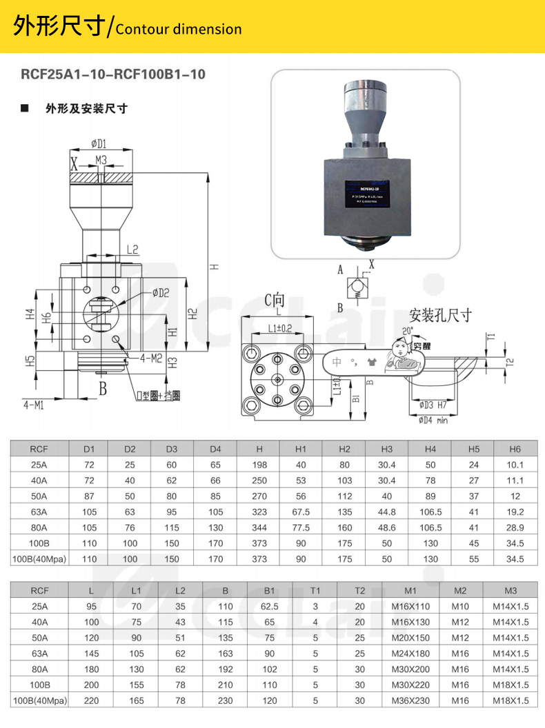 型號(hào): RCF25A1-10 RCF40A1-10 RCF50A1-10 RCF63A1-10 RCF80A1-10 RCF100A1-10 RCF100B1-10 RCF125A1-10 RCF150A1-
