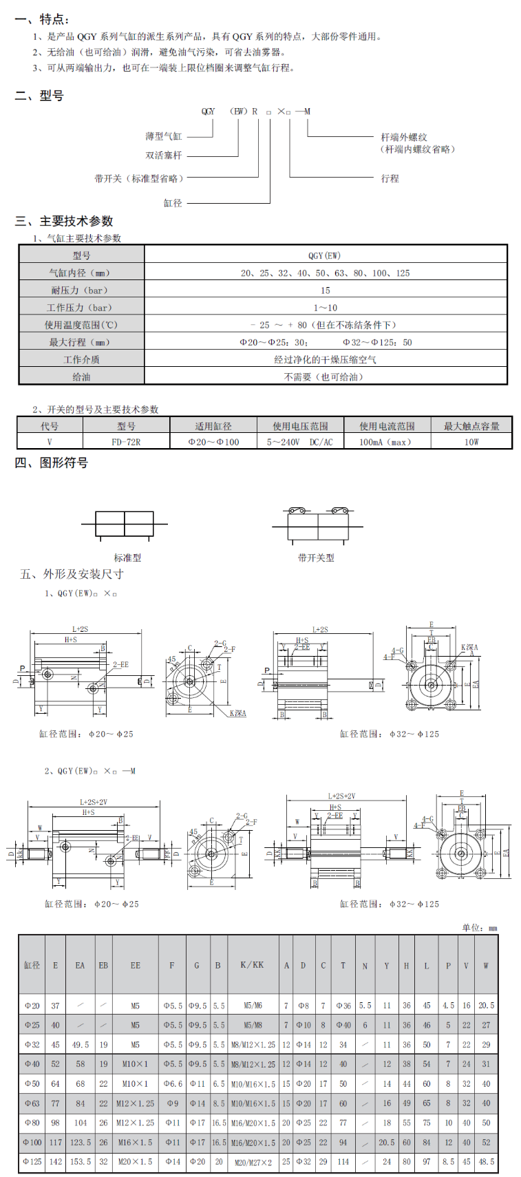 QGY(EW)雙活塞桿薄型氣缸