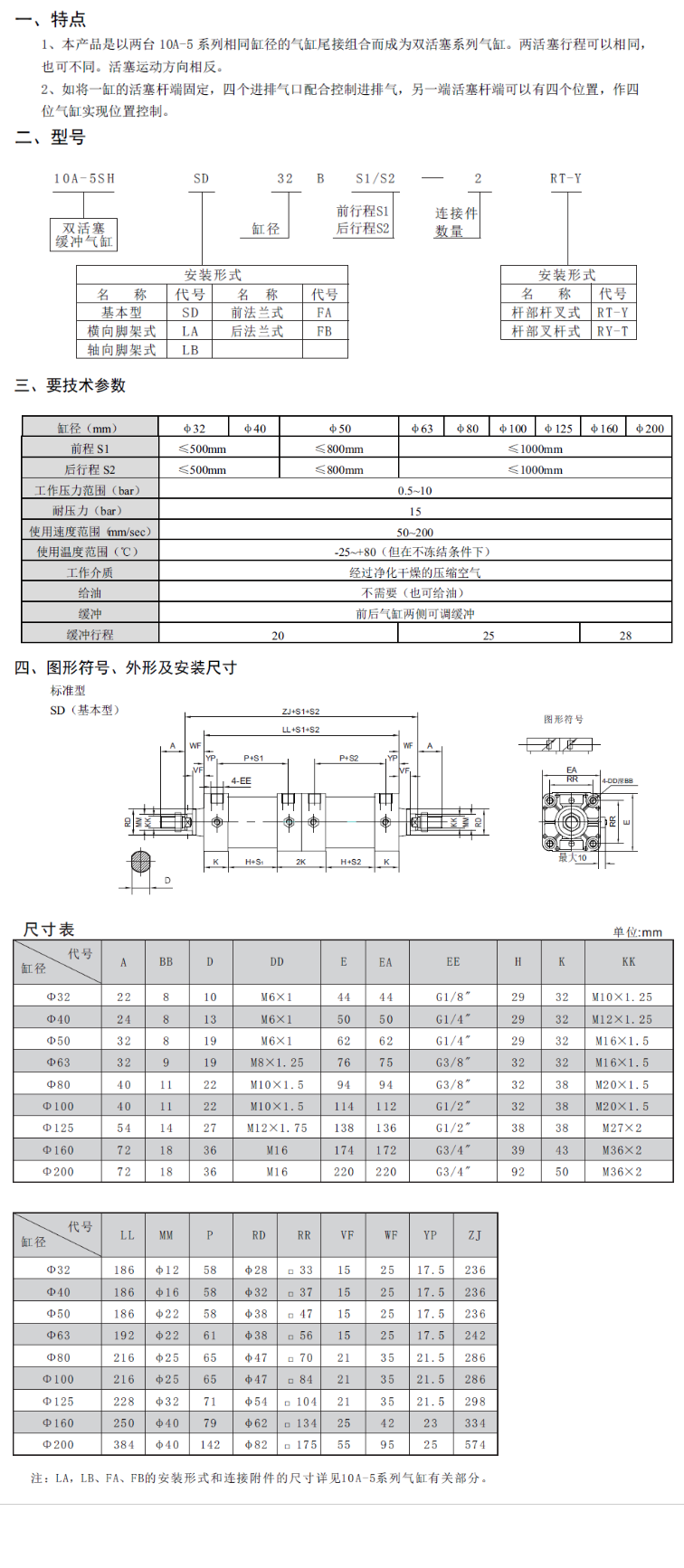 10A-5SH 雙活塞緩沖氣缸