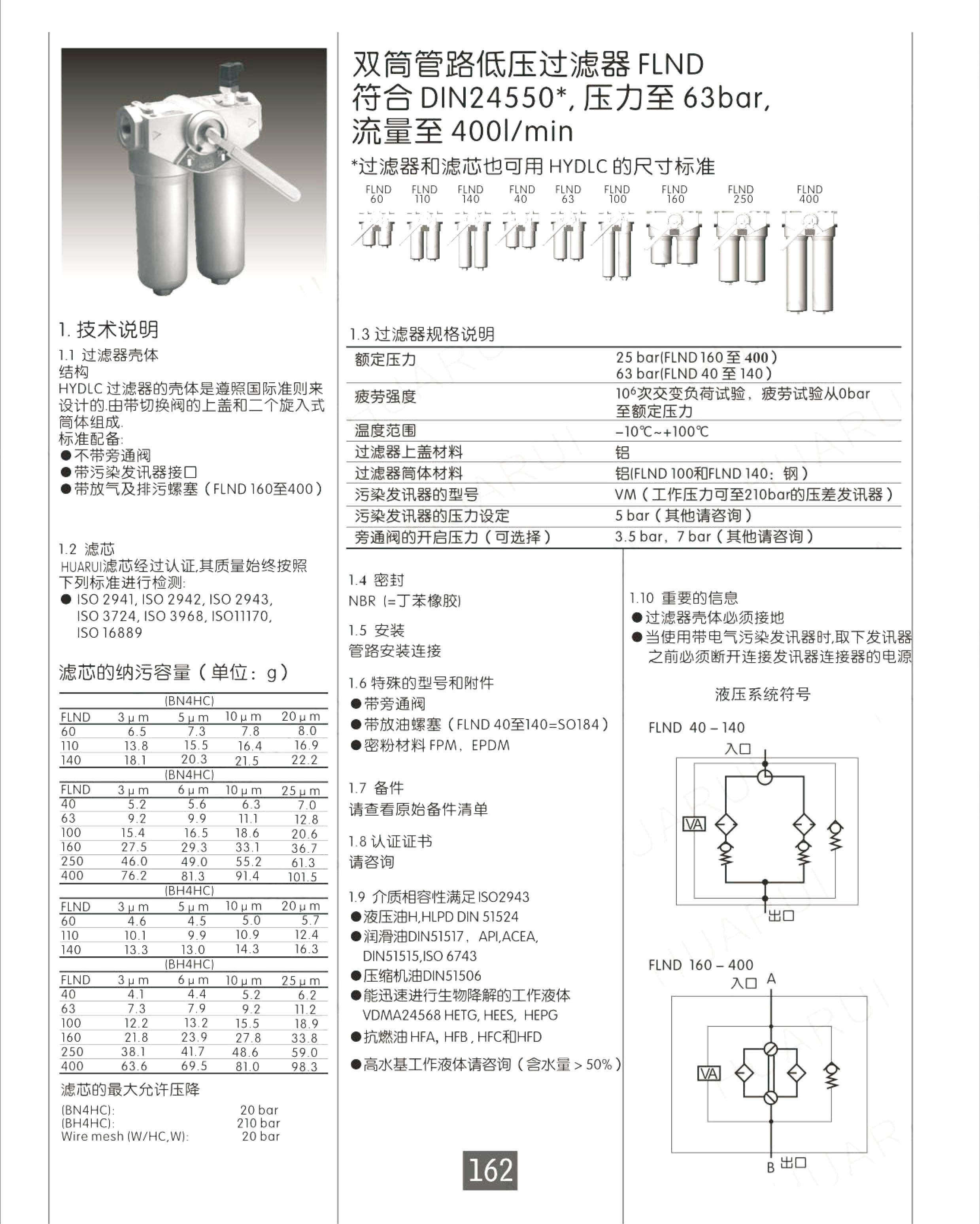 FLND60,FLND110,FLND140,FLND40,FLND63,FLNDBN/HC160DDE1LE1.2,FLND雙筒管路低壓過濾器