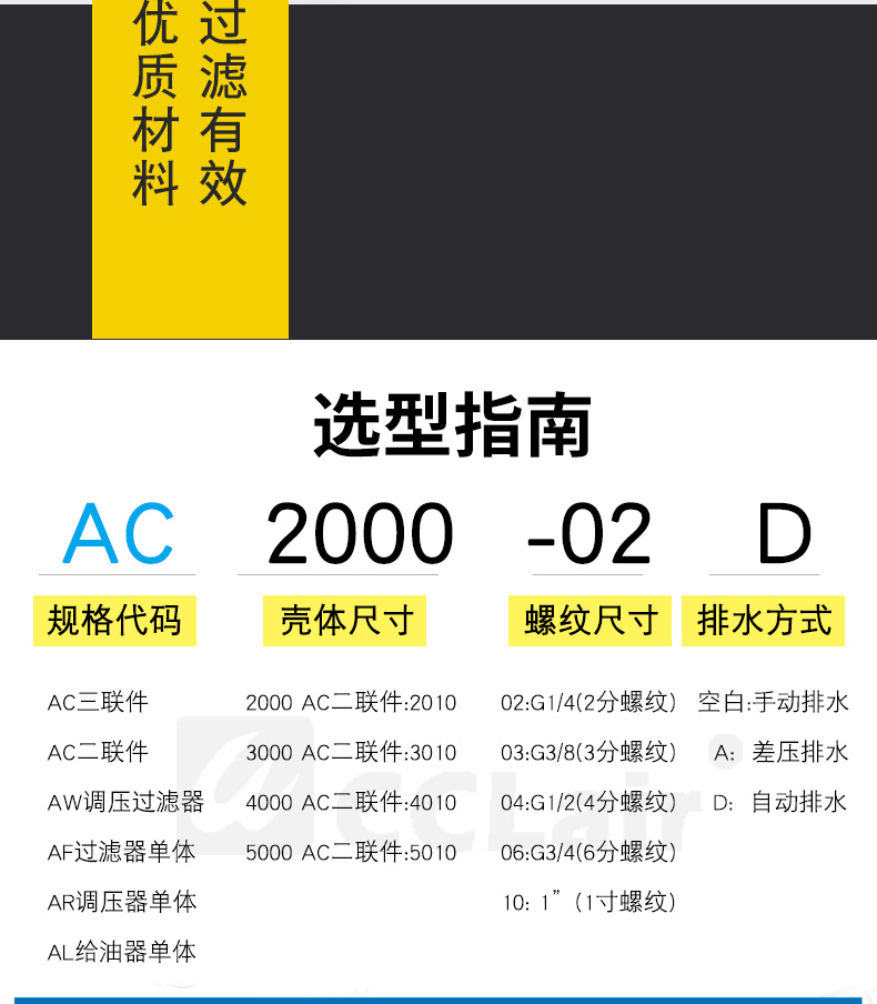 AC2010-02,AC2010-02D,AC3010-02,AC3010-02D,氣源處理二聯(lián)件 AC3010-03,AC3010-03D,AC4010-04,AC4010-04D, AC4010-06,AC4010-06D,AC5010-06,AC5010-06D, AC5010-10,AC5010-10D,白色款AC2010-02,白色款AC2010-02D,