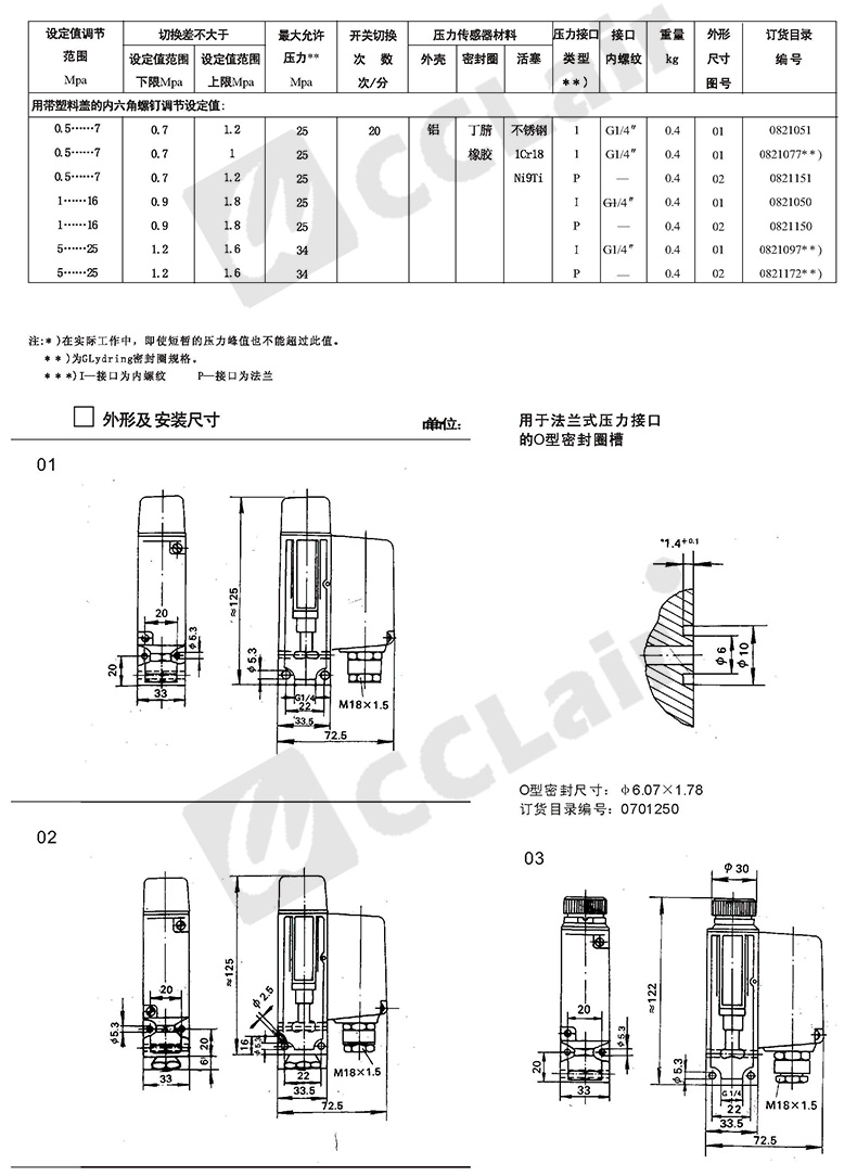 0815100,0813500,0815200,0813600,0815300,0813700,壓力控制器 普通 D501/7D切換差不可調(diào)