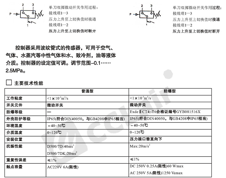 0810108,0811508,0810208,0811608,壓力控制器 D502/7DZ切換差不可調(diào)
