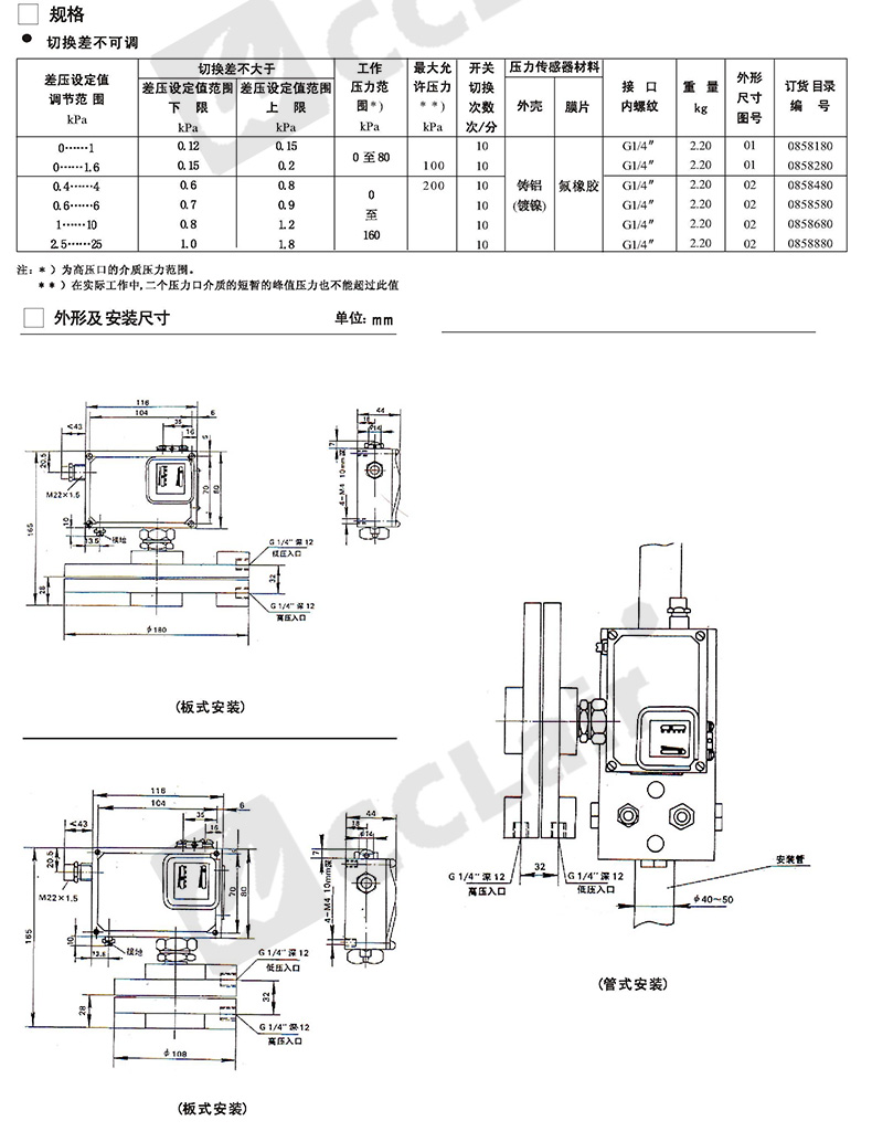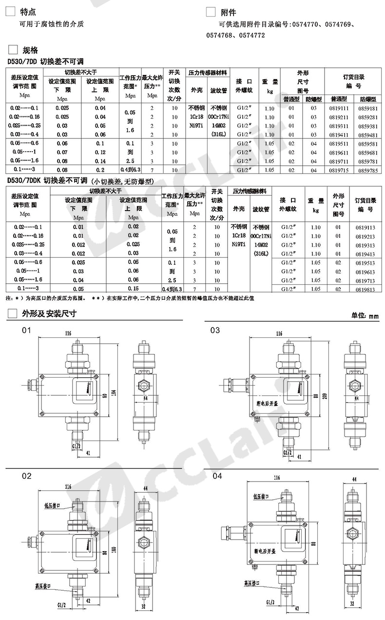 0819113,0819513,0819213,0819613,0819313,0819713,0819413,0819813,小切換差型差壓控制器D530/7DDK切換差不可調(diào)