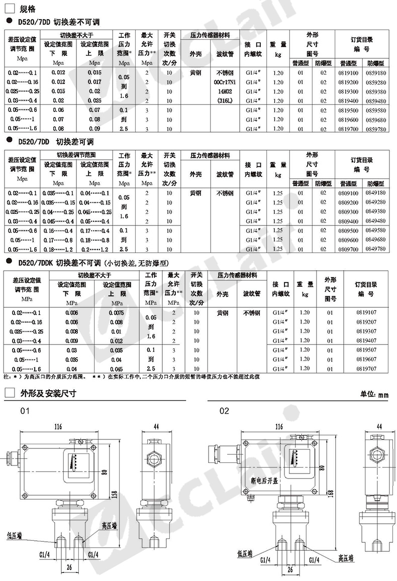 0849180,0849580,0849280,0849680,0849380,0849780,0849480,壓差開關(guān) 防爆 D520/7DD切換差可調(diào)