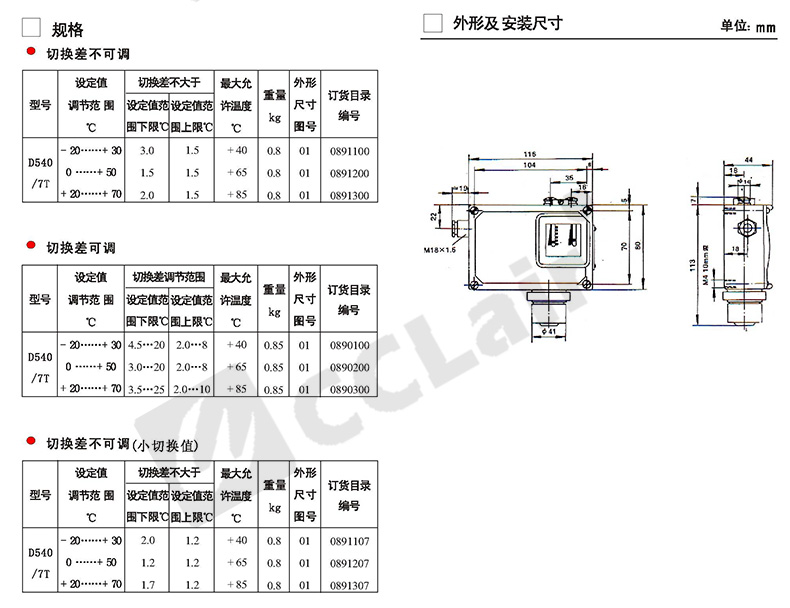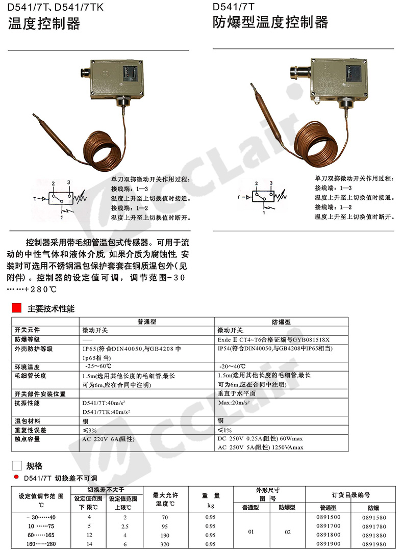 0891500,0891700,0891800,0891900,溫度控制器 普通 D541/7T切換差不可調(diào)