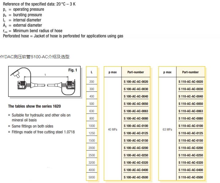 HYDAC S100-AC-AC-0020,S100-AC-AC-0030,S100-AC-AC-0040,S100-AC-AC-0050,S100-AC-AC-0063,S100-AC-AC-0080,S100-AC-AC-0125,S100-AC-AC-0150,S100-AC-AC-0200,S100-AC-AC-0250,S100-AC-AC-0320,S100-AC-AC-0400,S100-AC-AC-0500,S110-AC-AC-0020,S110-AC-AC-0030,測壓軟管