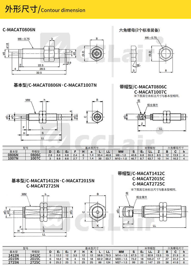C-MAKS0806,C-MAKS1005,C-MAKS1008,C-MAKS1210,C-MAKS1412,C-MAKS2020,油壓緩沖器C-MAKC無緩沖頭