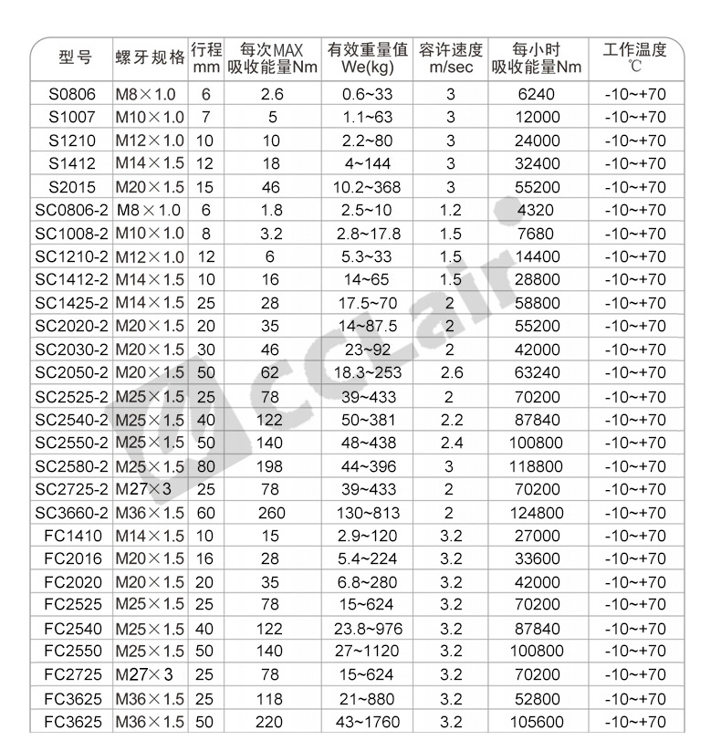 S0806NC,S1412,S1007,S1412NC,S1007NC,S2015,液壓緩沖器 S1210,S2015NC,S1210NC,