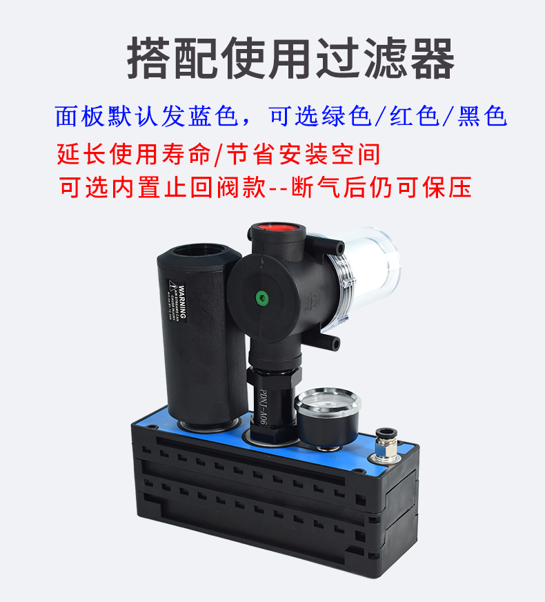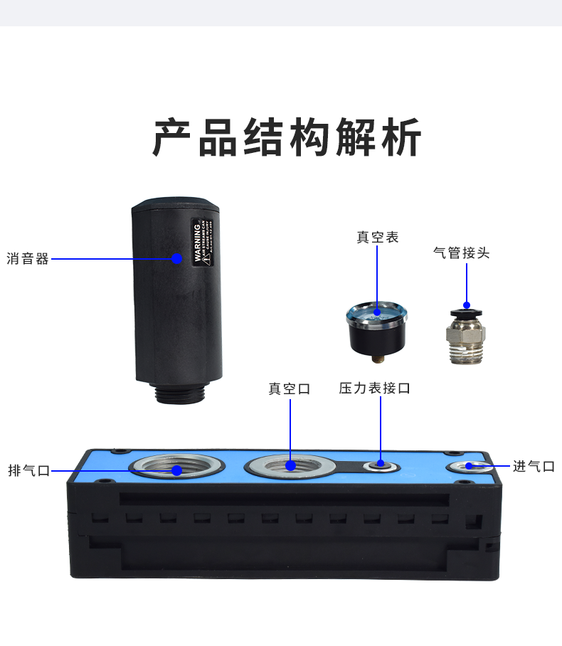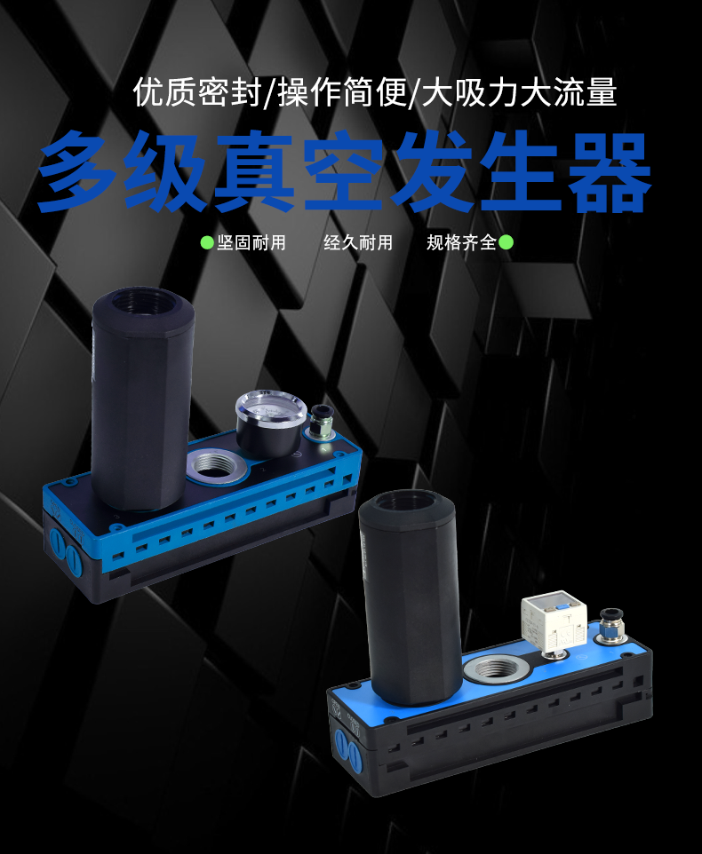 多級高真空型發(fā)生器的工作原理是利用噴管高速噴射壓縮空氣,?在噴管出口形成射流,?產(chǎn)生卷吸流動(dòng)。?這種工作原理使得噴管出口周圍的空氣不斷地被抽吸走,?從而使吸附腔內(nèi)的壓力降至大氣壓以下,?形成一定真空度。