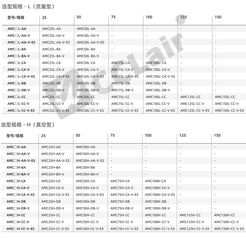 AMC25H-CA,AMC50H-CA,AMC75H-CA, AMC100H-CA,AMC125H-CA,AMC150H-CA, AMC125H-CC,AMC150H-CC, AMC25H-CA-V,AMC50H-CA-V, AMC75H-CA-V,AMC100H-CA-V, AMC125H-CC-V,AMC150H-CC-V, AMC25L-CA,AMC50L-CA,AMC75L-CA, AMC100L-CA,AMC125L-CA,AMC150L-CA, AMC125L-CC,AMC150L-CC,