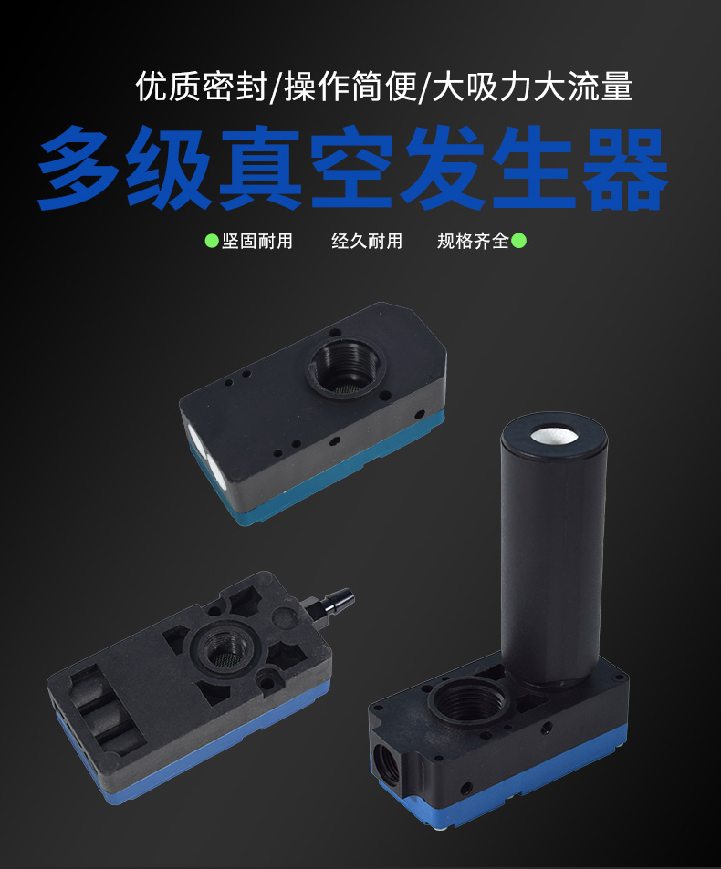 多級高真空型發(fā)生器的工作原理是利用噴管高速噴射壓縮空氣,?在噴管出口形成射流,?產(chǎn)生卷吸流動。?這種工作原理使得噴管出口周圍的空氣不斷地被抽吸走,?從而使吸附腔內(nèi)的壓力降至大氣壓以下,?形成一定真空度。