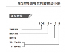 全系列分為小型可調節(jié)型和中大型可調節(jié)型兩大類,其中,BDE36M以下的型號為小型可調節(jié)型,外缸體為全螺牙外螺紋;BDE42以上的型號為中大型可調節(jié)型,外缸體兩端有外螺紋,該類型緩沖器兩端的連接件,可選擇U型夾的安裝方式。