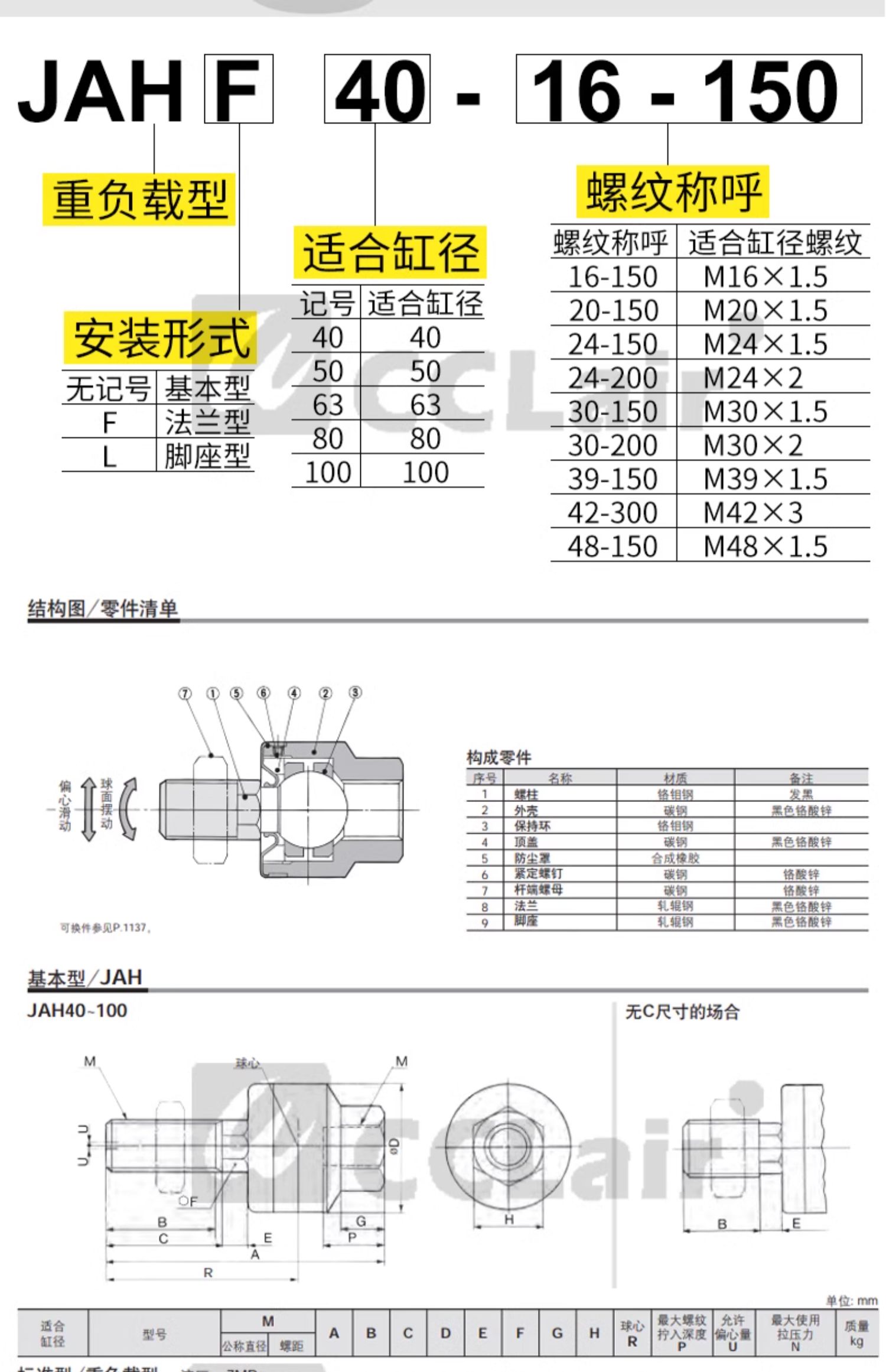 JAH40-16-150(M16*1.5),JAH50-20-150(M20*1.5),JAH63-24-150(M24*1.5),JAH63-24-200(M24*2),JAH80-30-150(M30*1.5),JAH80-30-200(M30*2),JAH100-39-150(M39*1.5),JAH100-39-200(M39*2),JAH100-42-300(M42*3),JAH100-42-200(M42*2),JAH100-48-150(M48*1.5)浮動(dòng)接頭