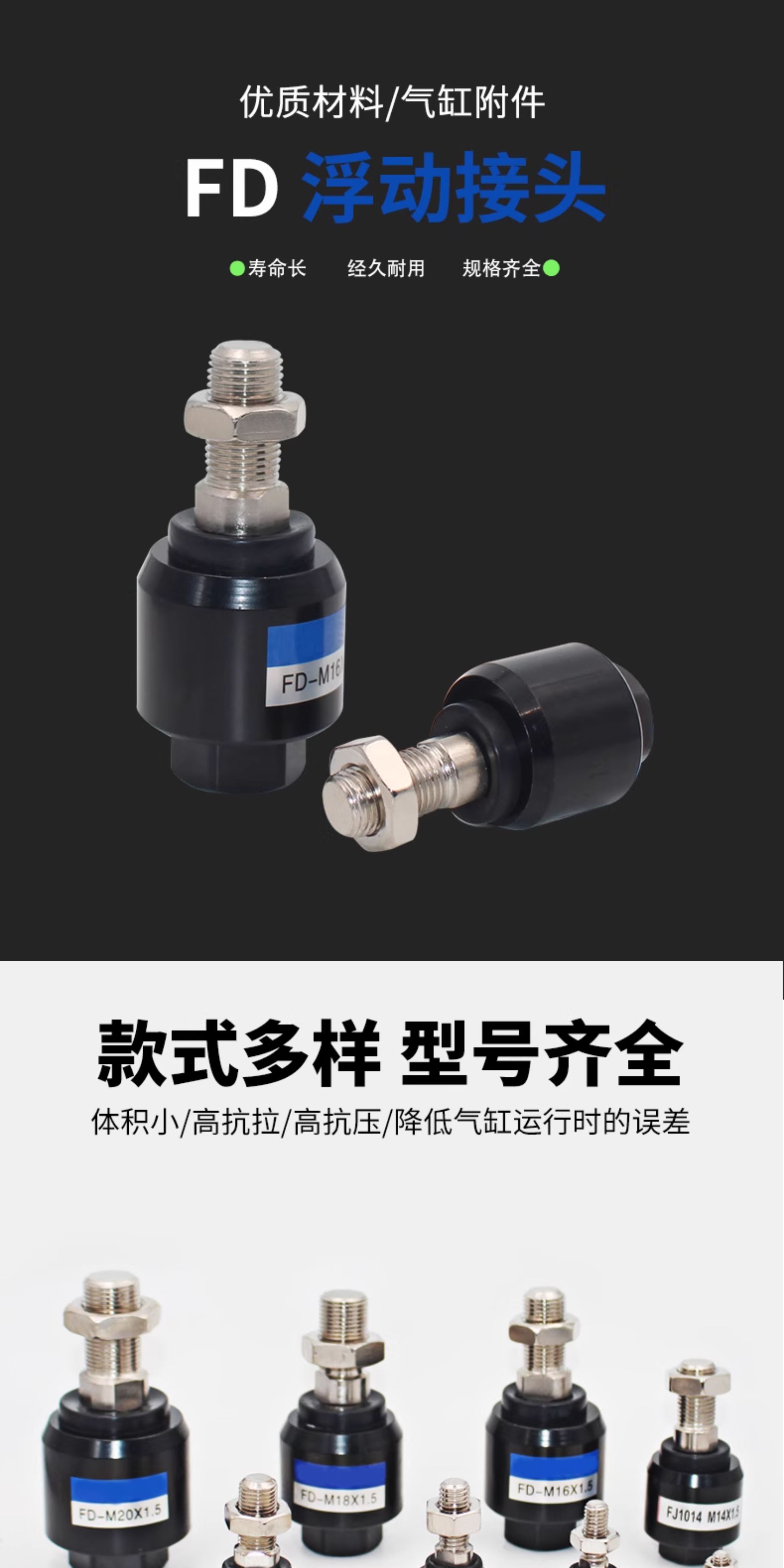 FD1003(M3*0.5),FD1004(M4*0.7),FD1005(M5*0.8),FD1006(M6*1),FD1008(M8*1.25),FD1010(M10*1.25),FD1010(M10*1.5),FD1012(M12*1.25),FD1012(M12*1.5),FD1012(M12*1.75),FD1014(M14*1.5),FD1016(M16*1.5),FD1016(M16*2),FD1018(M18*1.5),FD1020(M20*1.5)浮動接頭