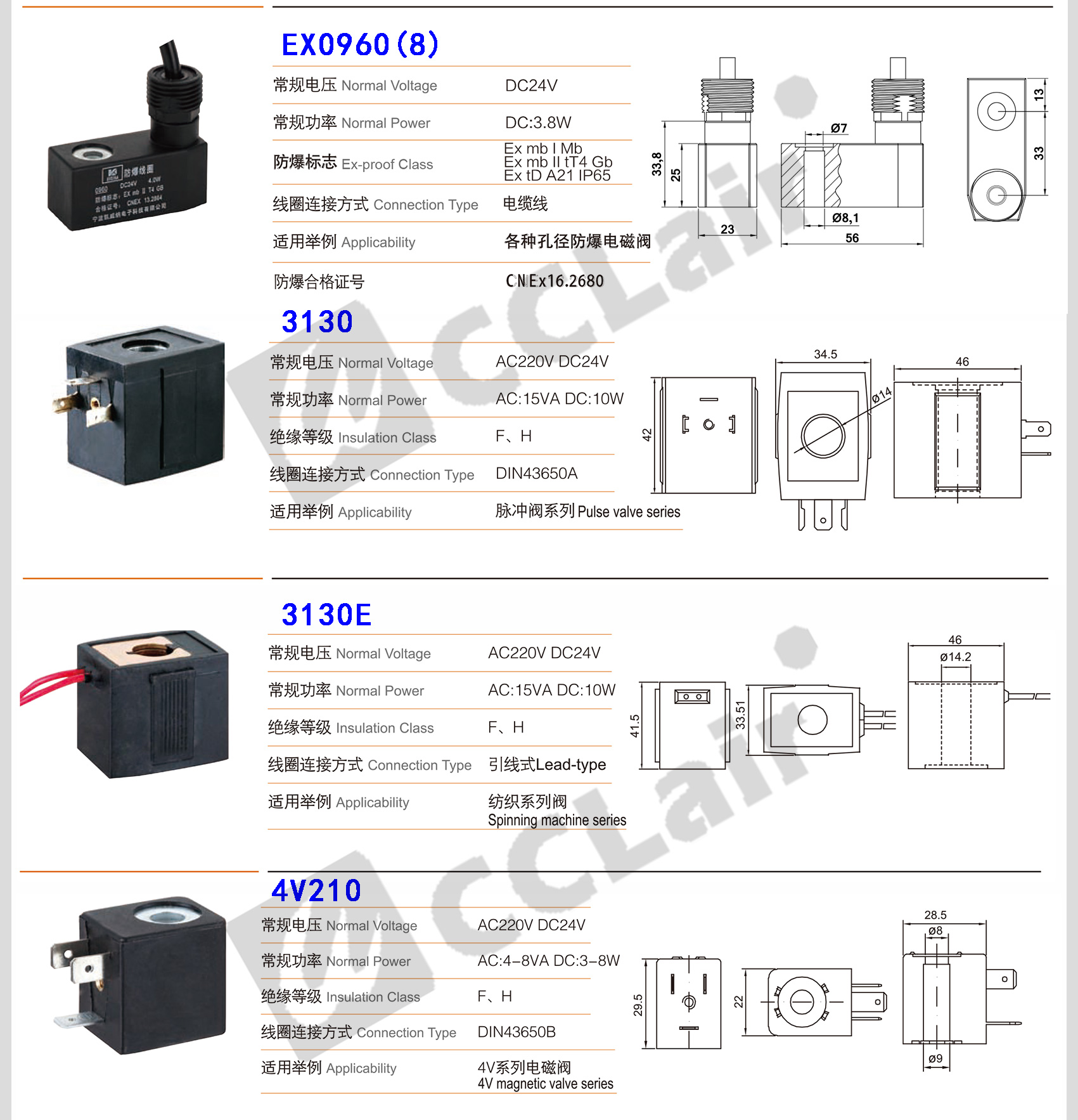 Best-nr0200,Best-nr0200M,4V110-C,4V210-W,4V210-C,DZT-022,EVI7/9,SRS2-5D,SRS2-8D,710,3130,3130E,0543 001-00,0545 001-0015802,BD-A,BD-B,BD-C,VX2120,2W-13MM,2W-16MM,2W-20MM,2W-16F,AB310,AB310E,AB410,AB410E,AB510,16431,16432防爆電磁閥