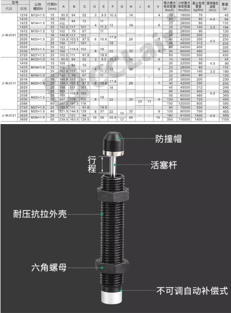J-WJC01-1210,J-WJC01-1410,J-WJC01-1415,J-WJC01-1425,J-WJC01-1612,J-WJC01-2016,J-WJC01-2020,J-WJC01-2025,J-WJC01-2525,J-WJC01-2530,J-WJC01-2725,J-WJC11-1210,J-WJC11-1410,J-WJC11-1415,J-WJC11-1425,J-WJC11-1612,J-WJC11-2016,J-WJC11-2020,J-WJC11-2025緩沖器
