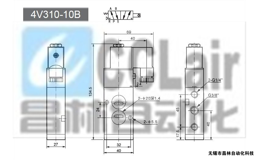 | 接管口徑 | 進氣=出氣=G3/8" 排氣=G1/4″ |