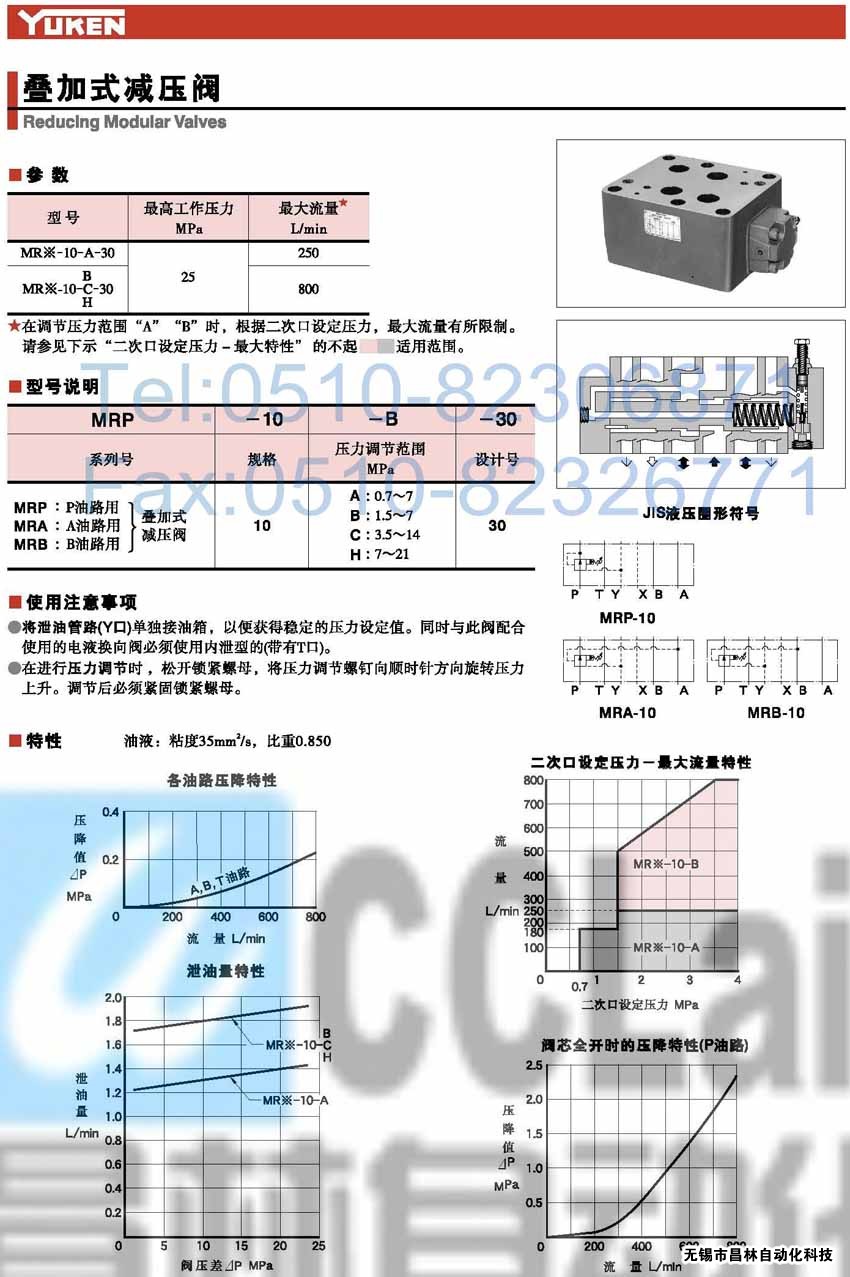 MRB-10-H-30,疊加式減壓閥,榆次油研疊加式減壓閥,YUKEN疊加式減壓閥