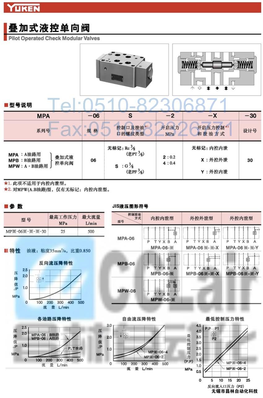 06S-2-Y-30,MPW-06S-4-X-30,MPW-06S-4-Y-30,疊加式液控單向閥,榆次油研YUKEN疊加式液控單向閥