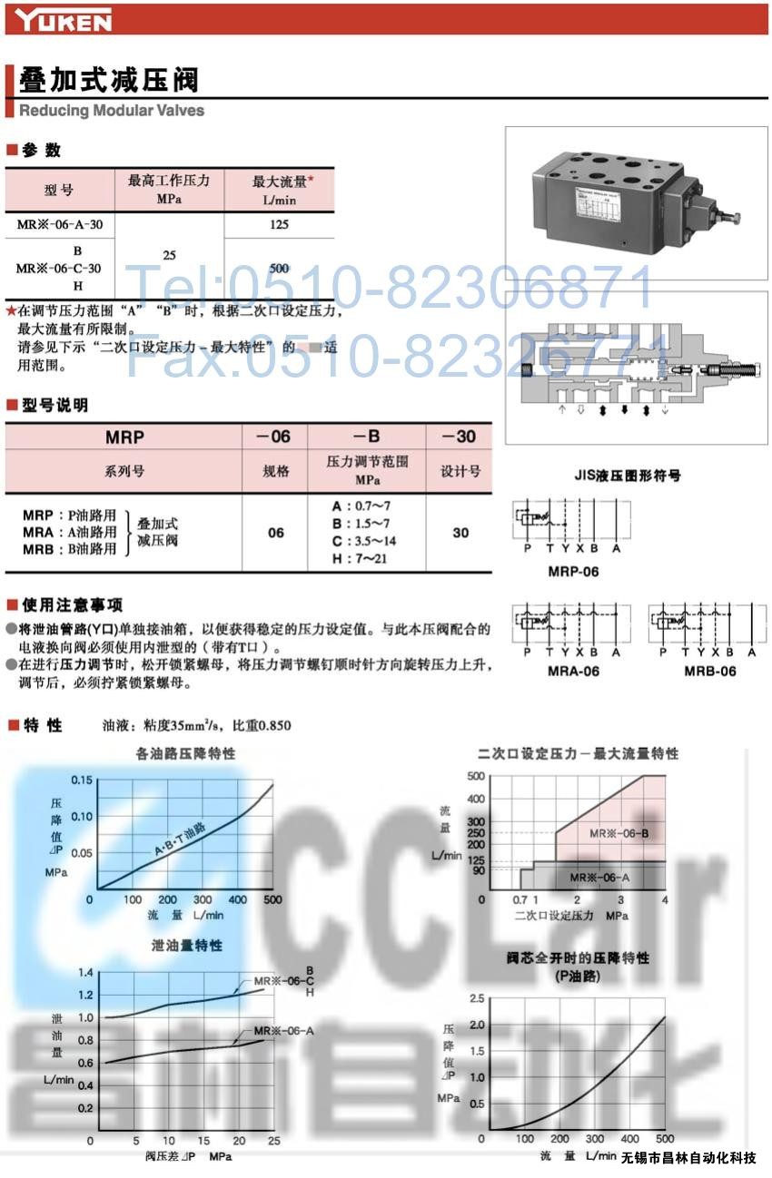 MRA-06-A-30,MRA-06-B-30,MRA-06-C-30,疊加式減壓閥,榆次油研疊加式減壓閥,YUKEN疊加式減壓閥