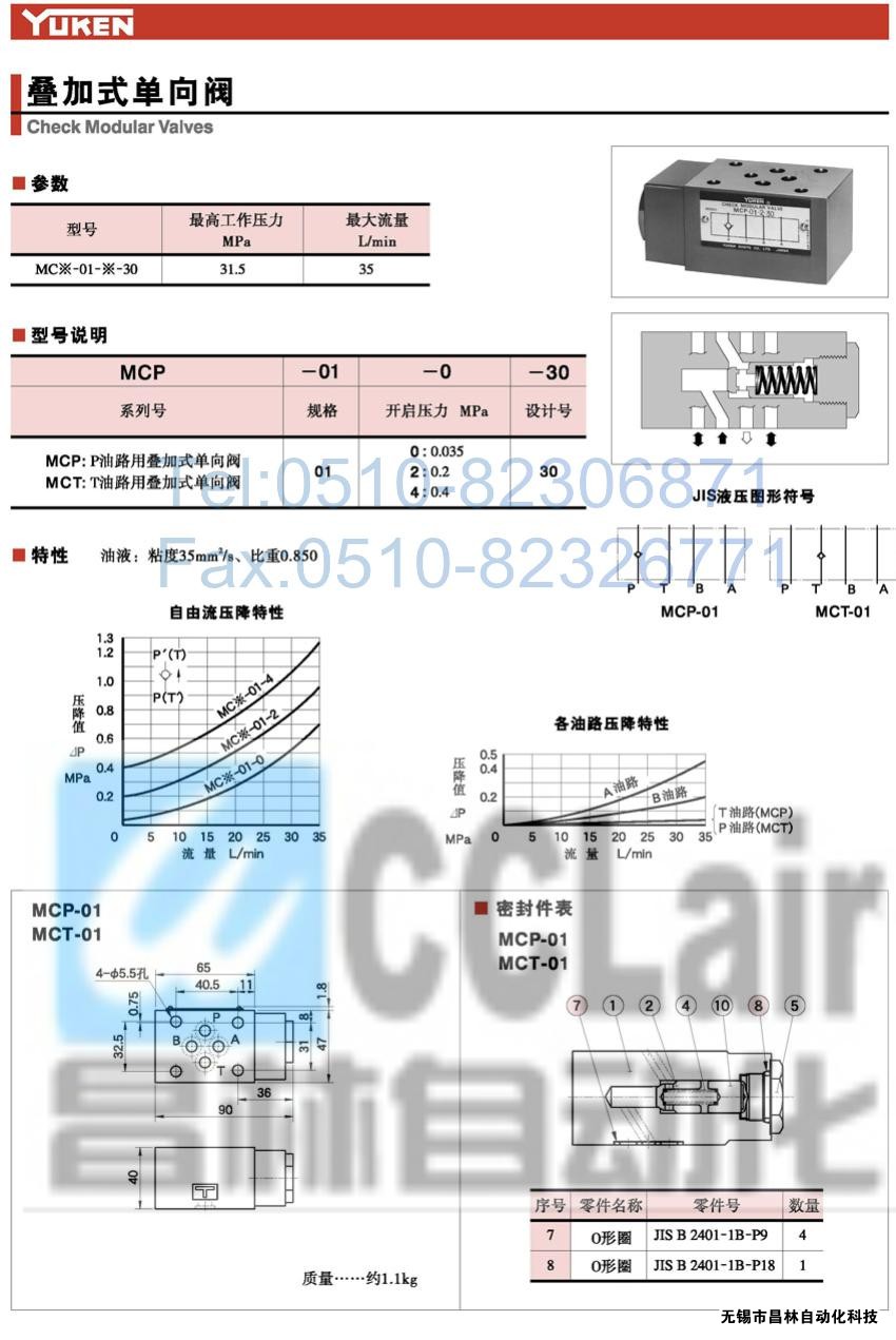 MCP-01-0-30,MCP-01-2-30,MCP-01-4-30,疊加式單向閥,榆次油研疊加式單向閥,YUKEN疊加式單向閥