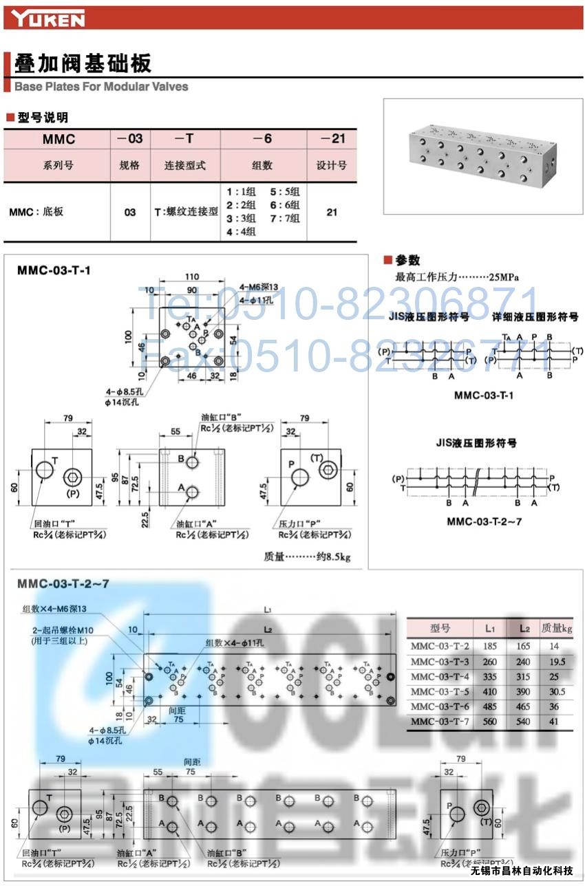 MMC-03-T-6-21,MMC-03-T-1-21,MMC-03-T-2-21,疊加閥基本板,榆次油研疊加閥基礎板,YUKEN疊加閥基礎板