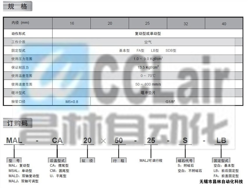MAL-CM40-175,MAL-U40-175,MAL40-175,鋁合金迷你氣缸