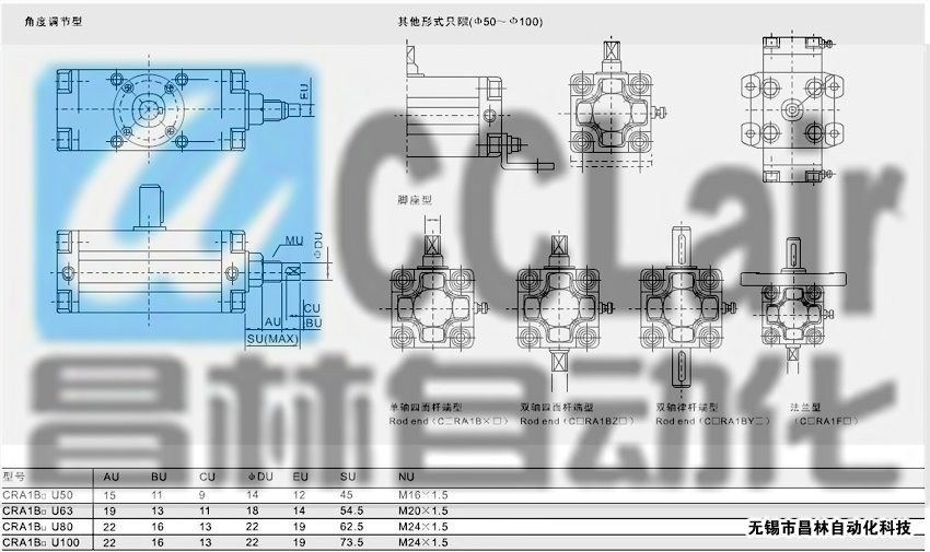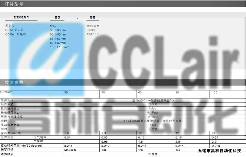 CRA1 63-180,CRA1 80-90,CRA1 80-180,CRA1 100-90,CRA1 100-180,齒輪齒條式擺動氣缸