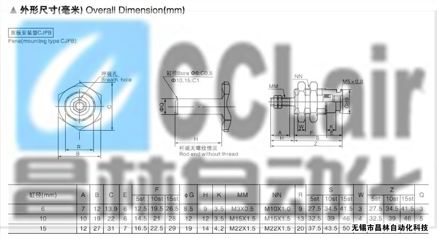 CJPB10-15,CJPB10-20,CJPB10-30,CJPB15-5,針型單動(dòng)氣缸