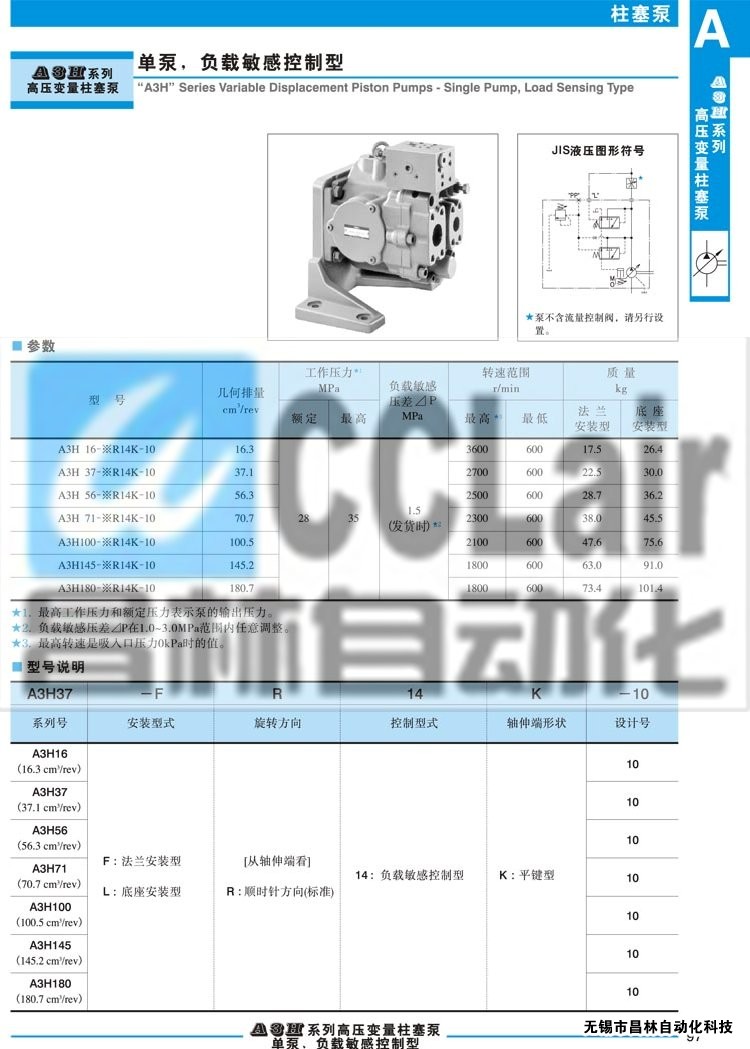 A3H56-FR14K-10,A3H56-LR14K-10,A3H71-FR14K-10,A3H71-LR14K-10,高壓變量柱塞泵