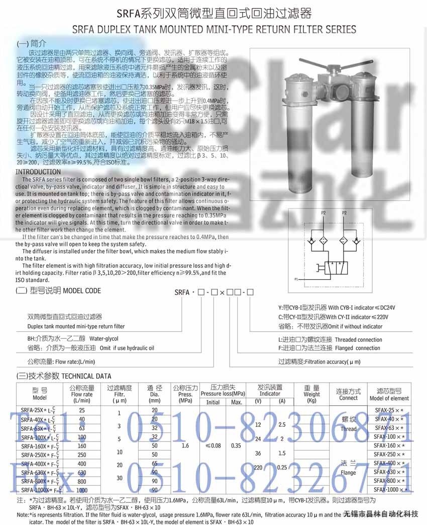 SFAX-25×1,SFAX-25×3,SFAX-25×5,SFAX-25×10,SFAX-25×20,濾芯,雙筒微型直回式回油過濾器(新型)